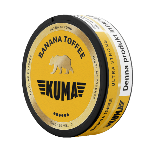 KUMA Banana Toffee by KUMA provides a creamy toffee and tropical banana flavour in a slim pouch format. This ultra strong product contains 20 pouches per can with 13.75mg nicotine per pouch. (25mg/gram)